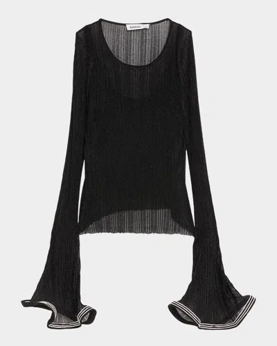 Maebry Crystal-embellished Metallic Ribbed-knit Top In Black