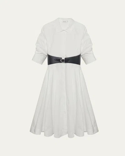Olson Belted Cotton-blend Poplin Midi Shirt Dress In White