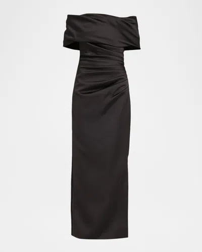Valencia Pleated Off-shoulder Column Gown In Black