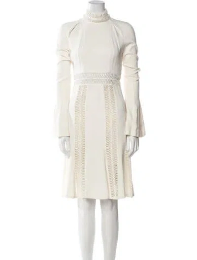 Pre-owned Mock Neck Knee-length Dress In White