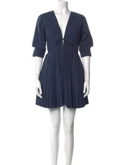 Pre-owned V-neck Mini Dress In Blue
