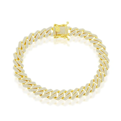 Sterling Silver 8mm Micro Pave Monaco Bracelet - Gold Plated In White