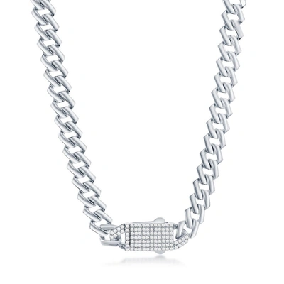 Sterling Silver 9mm Monaco Chain W/micro Pave Cz Lock In White