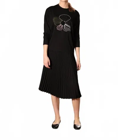 Women's Crewneck Long Sleeve Top With Drawstring Bottom In Black