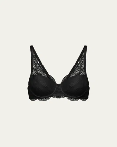Womens Black Intrigue Triangle Underwired Lace Push-up Bra