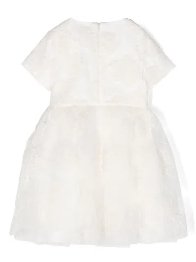 Kids' Floral-embroidered Tulle Dress In White