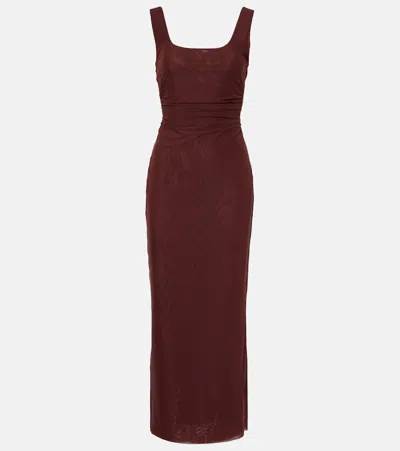 Alessia Draped Jersey And Satin Maxi Dress In Braun