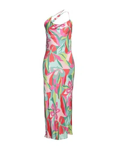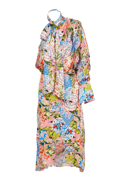 Multicolor One Shoulder Midi Dress In Pink/red
