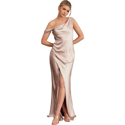 One Shoulder Satin Bridesmaid Dress In Neutral