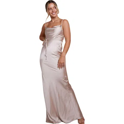 Bridesmaid Cowl Back Satin Maxi Dress In Pink