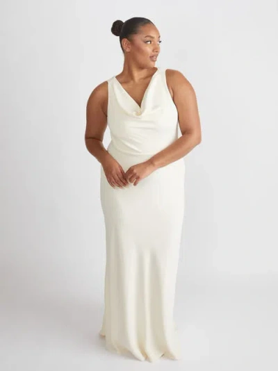 Bridesmaids Cowl Front Satin Slip Dress In Champagne-gold In White
