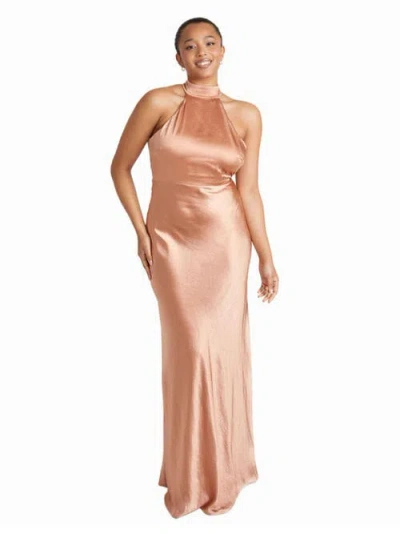 Halter Neck Satin Bridesmaid Dress In Neutral