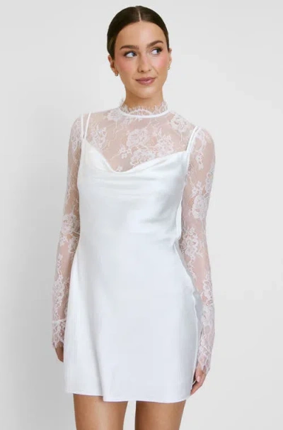 Lace Sleeve Cowl Satin Mini Dress In White