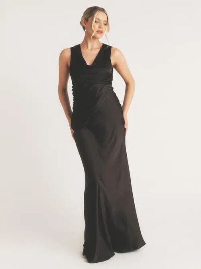 Bridesmaid Asymmetric Satin Maxi Dress In Black