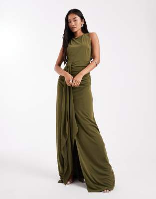 Bridesmaid Asymmetric Cowl Maxi Dress In Green