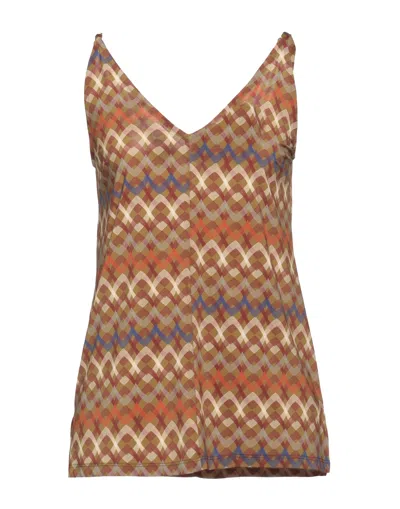 Woman Top Brown Size 4 Silk, Elastane