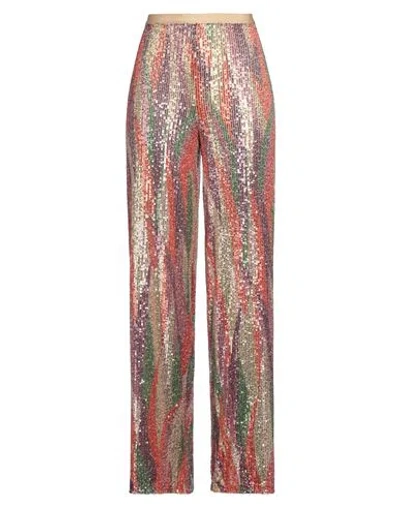 Woman Pants Red Size 6 Viscose, Silk In Animal Print