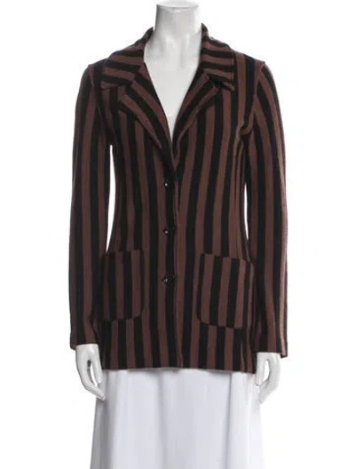 Pre-owned Merino Wool Striped Blazer In Brown