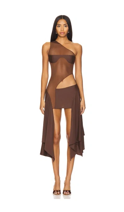 X Revolve Tricot Mesh Dress In 巧克力棕色