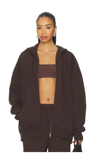 Boyfriend Fleece Boxy Zip-up Hoodie In Brown