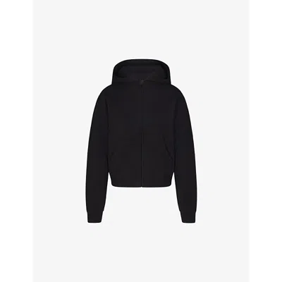 Womens Onyx Split Kangaroo-pocket Cotton-fleece Hoody