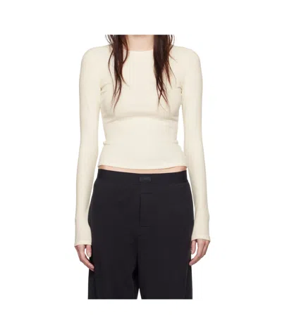 Off-white Cotton Rib Long Sleeve T-shirt In Marble