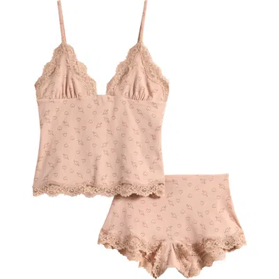 Fits Everybody Lace Trim Crop Camisole & Shorts Pajamas In Brown