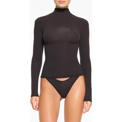 Sheer Modal Long Sleeve Turtleneck Bodysuit In Black