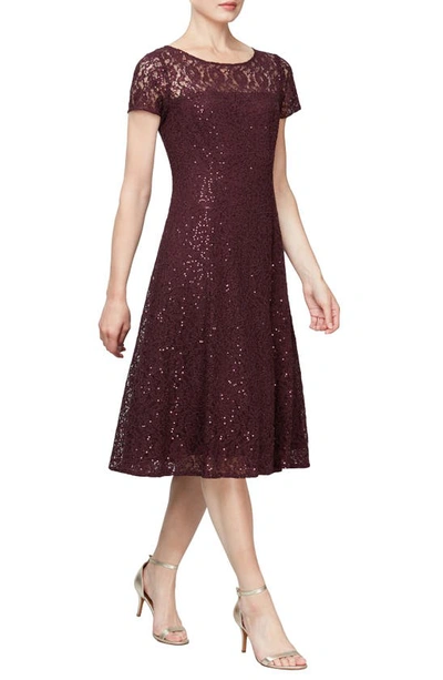 Sequined Lace Midi Dress In Purple