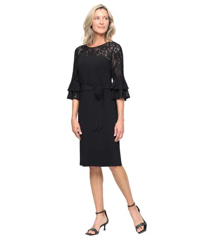 Women's Crewneck Double Tier Bell Sleeve Dress In Black