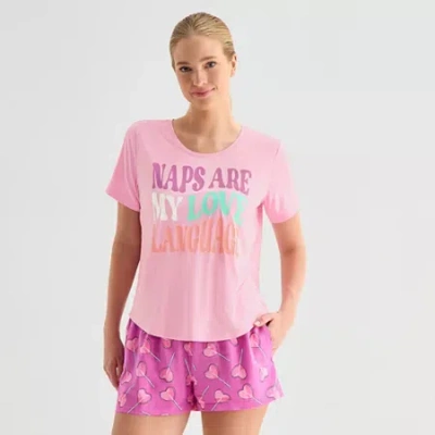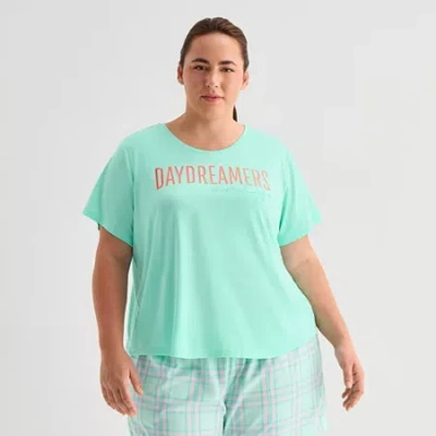 Womens Crew Neck Short Sleeve Plus Pajama Top In Multi