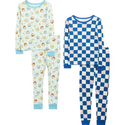 Kids' Jersey Fitted 4-piece Pajamas In Blue