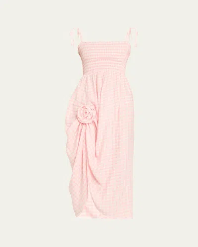 Atlanta Linen-blend Rosette Gingham Dress In Pink