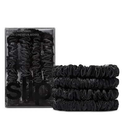 Pure Silk Back To Basics Skinny Scrunchies In Black, Set Of 4