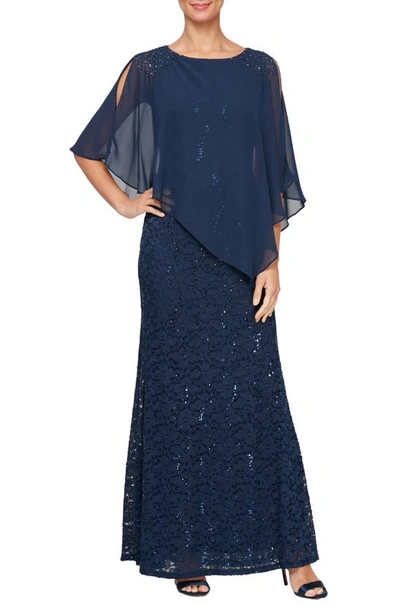 Tiered Chiffon Cocktail Dress With Jacket In Navy
