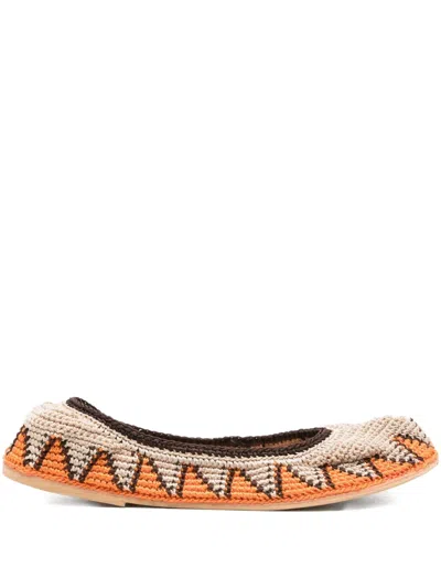 Triangle-pattern Crochet Ballet Flats In Neutral