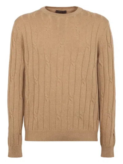 Cable-knit Cotton Sweater In Brown