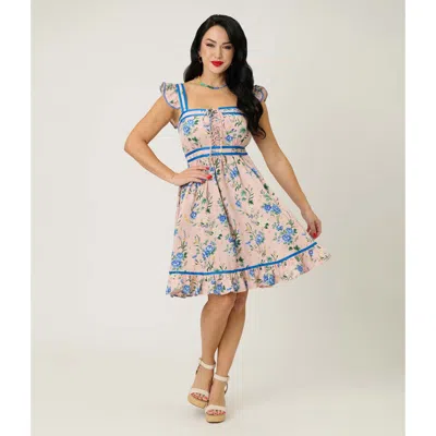 Angel Sleeve Downtown Scene Mini Fit & Flare Dress In Pink