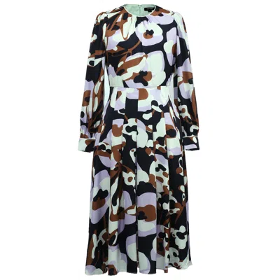 Women's Blue Macro Abstract Print Round Neck Dress - Navy In Multi