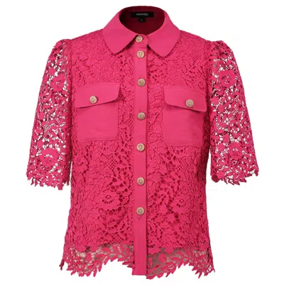 Women's Pink / Purple Lace And Center Buttons Shirt - Pink In Pink/purple