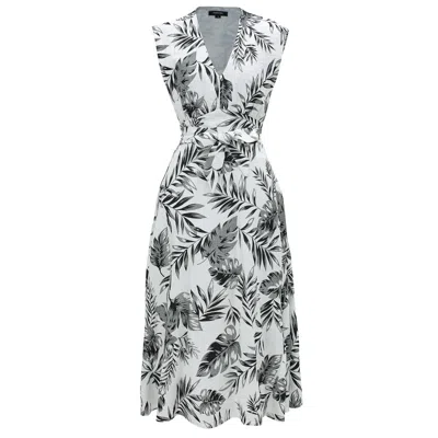 Women's Tropical Print Sleeveless Midi Dress - Black