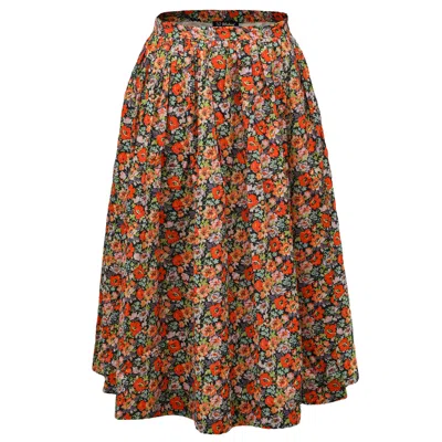 Women's Blue Flower Jacquard Puffy Midi Skirt In Multi