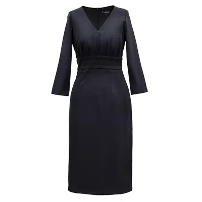 Women's Adjusted V -neck Dress And Folds On Chest - Black