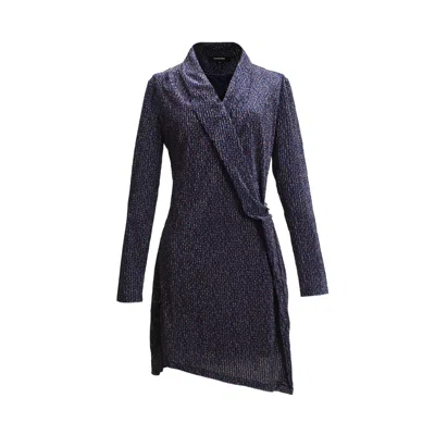 Women's Wrap Minimalist Dress And Italian Collar -blue