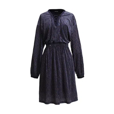 Women's Blue Lacing On V-neck Velvet Tunic Dress With Liberty Print