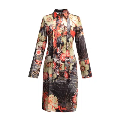 Women's Bow-tie Flower Print Shirt Dress In Black
