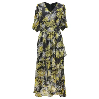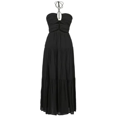 Women's Black Contrasted Trims And Tiered Panel Maxi Dress