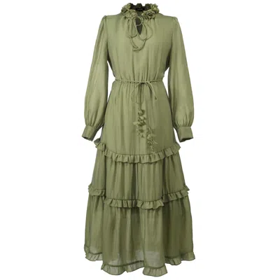 Women's Green Tiered Ruffles And Panels Blouse-dress