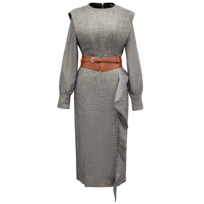 Women's Grey Tailored Printed Suede Dress