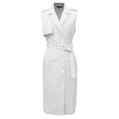 Women's Double Breasted Trench Style Sleeveless Dress - White